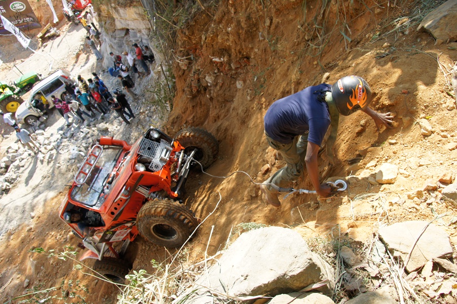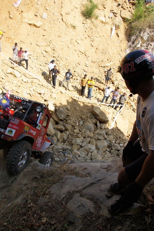 ตัวเต็งหมายเลข161มาเลเซียLoo Fu Siong / Edward Benggon ค่อยๆใช้วิ้นช์หย่อนรถยนต์ผ่านกับดักผามรณะอย่างใจเย็น ไม่กล้าประมาทดื้อลุยขับรถลงเหมือนจอมยุทธออฟโรดแขกศรีลังกา ในSS2โค-ตระ-ระ-หฤโหด!