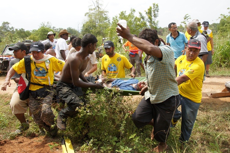 รีบเร่งพาออกจากป่านำตัวคนเจ็บส่งโรงพยาบาล!