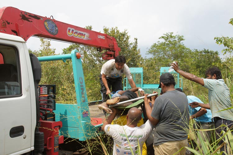 รีบเร่งพาออกจากป่านำตัวคนเจ็บส่งโรงพยาบาล!