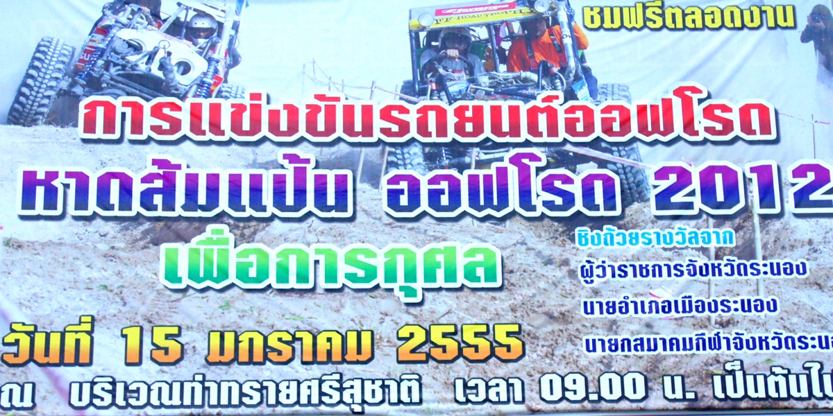 The first offroad competition of the year 2012 in Thailand was “ Hatt Sompan Offroad Challenge2012 ” and hosted by Ranong 4x4 Adventure Challenge from 14-15 January 2012 at Sri Suchart sandlot hatt sompan sub - district , mueang district , Ranong city which about 700 k.m. southern from Bangkok.