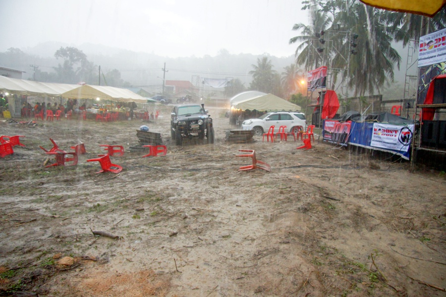 หลังจบการแข่งขันฝนได้ตกกระหน่ำลงมาอย่างหนัก ทำให้ต้องย้ายสถานที่รับรางวัล!