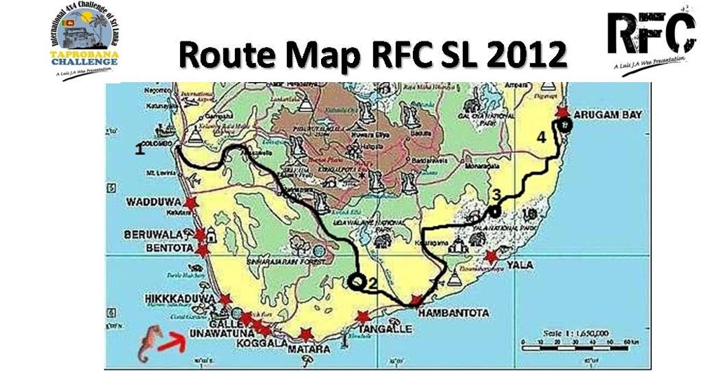 การท่องเที่ยวประเทศศรีลังกาและสายกาบินศรีลังกาน (Sri Lanka Tourism & Sri Lankan Airlines) ชอน ฮามีด(Sean Hameed) , รูชิราน ซิลวา(Rushiran Silva), และชมรมโฟร์วีลไดรว์ศรีลังกาFWDC(Four wheel drive club Sri Lanka) จัดการแข่งขันรถยนต์ออฟโรด4x4นานาชาติผจญภัยหฤโหด“ทาโปรบาน่า 4x4 ชาเลนจ์ TAPROBANA 4x4 CHALLENGE 2012” RFC INTERNATIONAL 4x4 ‘ SRI LANKA สุดยอดของผู้มีจิตวิญญาณชอบท่องเที่ยวผจญภัยท้าทาย(The ultimate spirit of 4x4 adventure) ระหว่างวันที่ 19-24 ตุลาคม 2012 ได้ทำพิธีปล่อยตัวนักแข่งขันออกเดินทางที่บริเวณอนุสรณ์สถานประกาศอิสระภาพกลางเมืองโคลอมโบ และเริ่มการแข่งขันวันแรกวันที่ 20 ตุลาคม เก็บคะแนนสะสมสนามโปรล็อค (PrologueSS) จำนวน 2SS แต่ต้องไปลงบู๊แข่งขันร่วมกับรายการแข่งขันออฟโรดของทหารชื่อ “แซปเปอร์ส ยิมโป SAPPERS GYMPO 2012” ที่มีการแข่งขันเพียงวันเดียว ลงบู๊แข่งขันออฟโรดหฤโหดแบบดวลคู่ ซึ่งเป็นการร่วมจัดการแข่งขันโดยผู้บัญชาการสูงสุดค่ายฝึกช่างฝีมืทหารศรีลังกา “ดานานจิต คารานรัตนี ( Brigadier Dhanajith Karanaratne) กับชอน ฮามีด(Sean Hameed) บริเวณสนามค่ายฝึกช่างฝีมือทหารศรีลังกา(Sri Lankan School of Military Engineering) อำเภอตุนกามา (Tunkama) เมืองแอมบิพิทียา(Embillpitiya) อยู่ห่างจากตัวเมืองหลวงโคลัมโบ ไปทางทิศตะวันออกเฉียงเหนือประมาณ 180 ก.ม ส่วนสมรภูมิบู๊แข่งขันที่เหลืออีกประมาณ 15 SS ของรายการแข่งขันทาโปรบาน่า 4x4 ชาเลนจ์ ต้องออกเดินทางต่อไปอีกประมาณ 100 ก.ม. แข่งขันกันในป่าลึกใกล้เมืองโมนาราคาล่า(Monaracala) บริเวณริมฝั่งแม่น้ำคัมบุคคาน(Kumbukkan river) ติดกับอุทยานแห่งชาติยาลา(Yala national park) แคมป์ไซค์ 1 ไอเรียโพเอีย( Iriypoia) แคมป์ไซค์ 2 ที่นัมบาน่า(Nabana) ใกล้เมืองลาฮูกาเอีย(Lahugaia) อ่าวอารูแกมเบย์(Arugambay) และปิดการแข่งขันในงานโคลัมโบมอเตอร์โชว์( Colombo Motor Show) ที่ BIMCH
