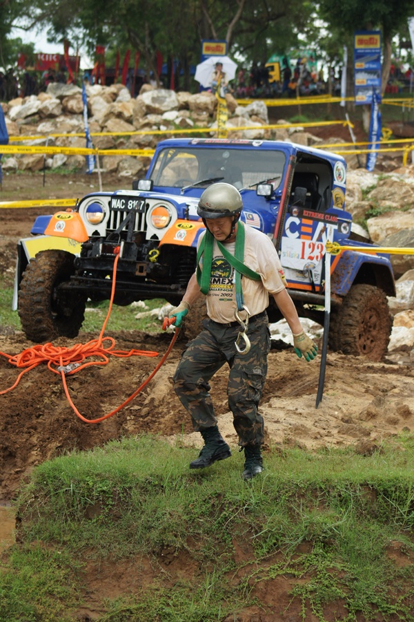 สิงห์เฒ่าออฟโรดเสือเหลืองปวดหัวเจอปัญหาจุดอ่อนของสายวิ้นช์ที่เป็นเชือก มักติดพันกัน! รถยนต์หมายเลข 123 “ แจ้คกี้ โฮ” ทีมมาเลเซีย