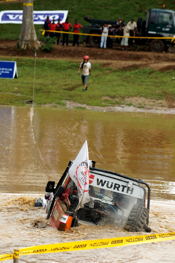 เจอปัญหาเชือกวิ้นช์พันกันกลางน้ำ! รถยนต์หมายเลข 123 “ริกกี้ ตาน / แจ้คกี้ โฮ” ทีมมาเลเซีย