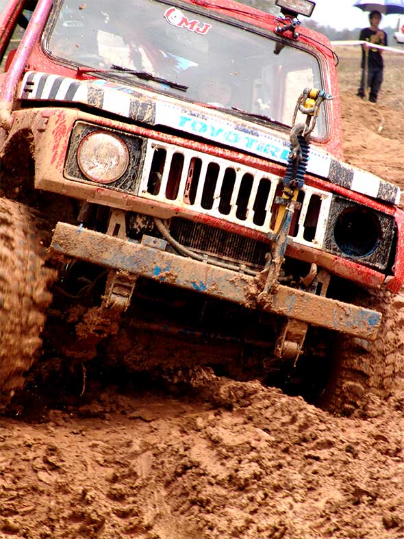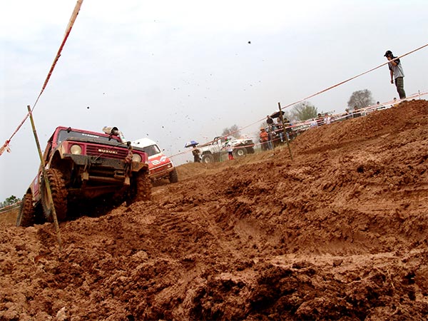 สนามแข่งขันเป็นสนามสร้างกลางท้องทุ่งเลียนแบบธรรมชาติ แข่งขันแบบคู่แต่แยกเก็บคะแนนอิสระ อุปสรรคกับดักหนักๆหลักๆมีทั้งเนินสูงเนินต่ำ 5 แห่ง เนินเอียงสั้น ทางโค้งรูปเกือบม้า ทางโค้งสั้นๆ เนินเล็กขวางยาว เนินบินเล็กๆ และหลุมลึกสลับข้างขวางยาว พื้นดินเป็นดินเหนียวเมื่อมีน้ำทำให้ลื่นเสียอาการง่าย ซึ่งการบู๊ออฟโรดในวันแรกก็ได้สร้างความตื่นเต้นตกใจจากการพลิกคว่ำของบางทีมและมีเหตุไฟไหม้รถยนต์ขณะบู๊แข่งขัน สร้างความโกลาหลสนุกสนานกันแบบขำๆ และสำหรับวันที่สองของการแข่งขัน ความยากไปลุ้นกันมันส์ๆสูสีเชียร์กันสนุกในแถวๆกับดักหลุมลึกสลับ เนินสูงและเหิรสู้ฟ้าท้าสู้เมรุกันที่ปลายทาง ทำให้บางทีมเกือบหมดฤทธิ์หมดเดชกันหลายหน!