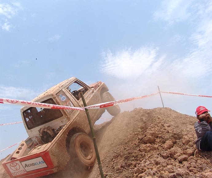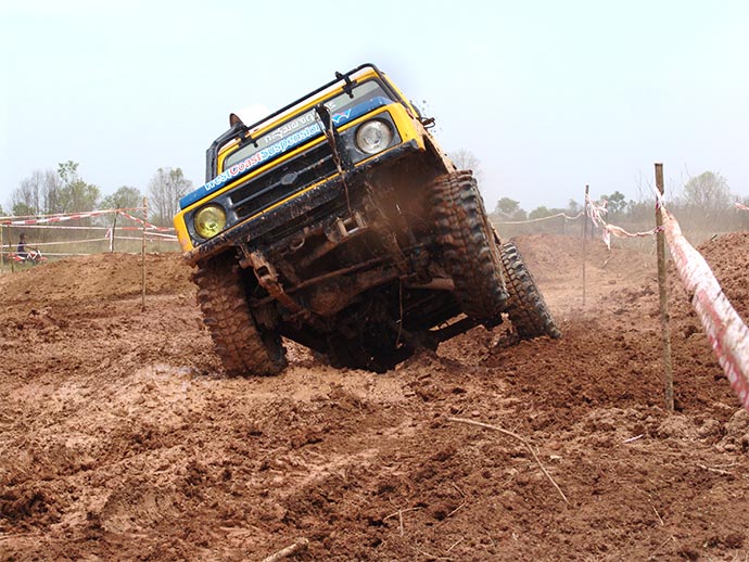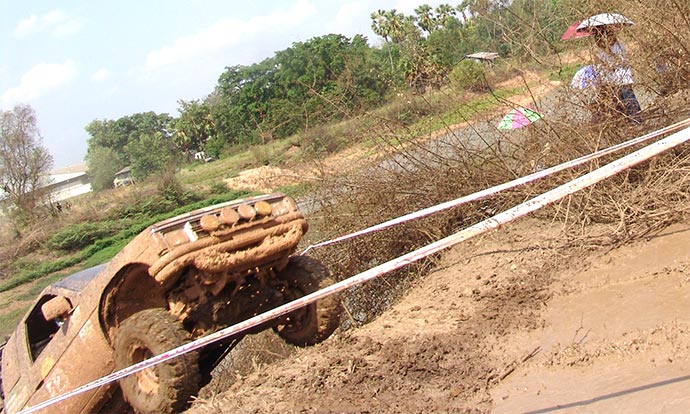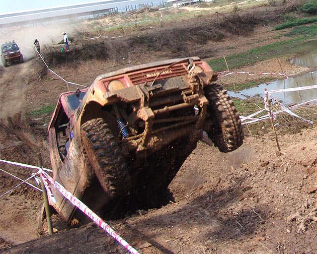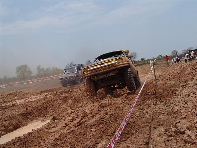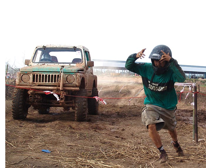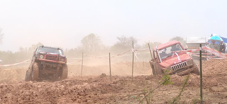 สนามแข่งขันเป็นสนามสร้างกลางท้องทุ่งเลียนแบบธรรมชาติ แข่งขันแบบคู่แต่แยกเก็บคะแนนอิสระ อุปสรรคกับดักหนักๆหลักๆมีทั้งเนินสูงเนินต่ำ 5 แห่ง เนินเอียงสั้น ทางโค้งรูปเกือบม้า ทางโค้งสั้นๆ เนินเล็กขวางยาว เนินบินเล็กๆ และหลุมลึกสลับข้างขวางยาว พื้นดินเป็นดินเหนียวเมื่อมีน้ำทำให้ลื่นเสียอาการง่าย ซึ่งการบู๊ออฟโรดในวันแรกก็ได้สร้างความตื่นเต้นตกใจจากการพลิกคว่ำของบางทีมและมีเหตุไฟไหม้รถยนต์ขณะบู๊แข่งขัน สร้างความโกลาหลสนุกสนานกันแบบขำๆ และสำหรับวันที่สองของการแข่งขัน ความยากไปลุ้นกันมันส์ๆสูสีเชียร์กันสนุกในแถวๆกับดักหลุมลึกสลับ เนินสูงและเหิรสู้ฟ้าท้าสู้เมรุกันที่ปลายทาง ทำให้บางทีมเกือบหมดฤทธิ์หมดเดชกันหลายหน!