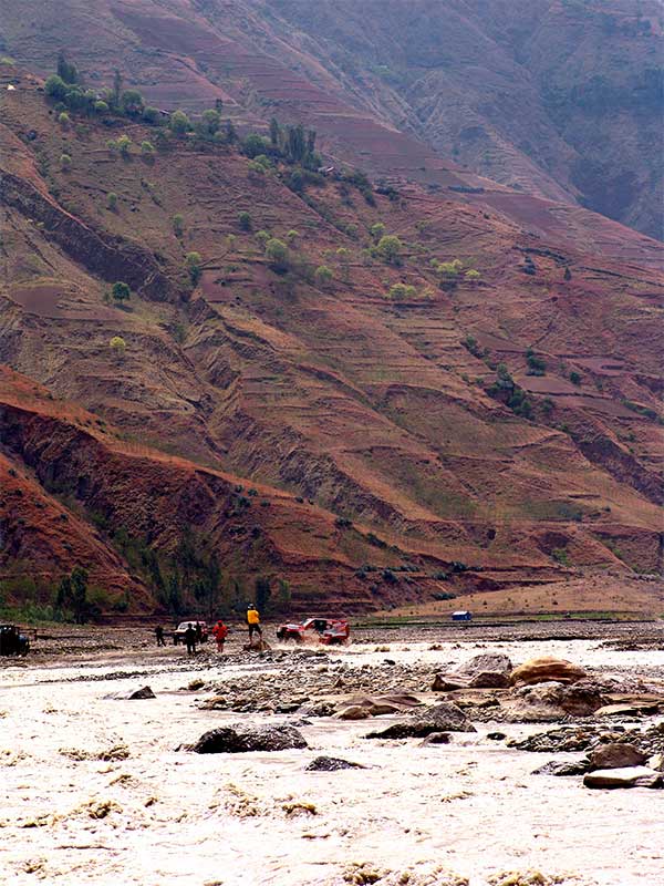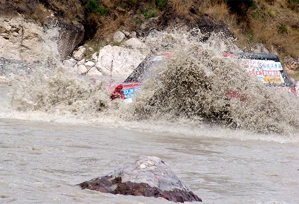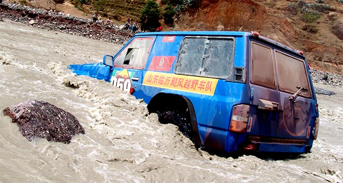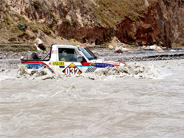 จากตอนที่แล้วเช้า30 เมษายน วันที่สองของการแข่งขันก็ทำให้ทราบแน่นอนว่า การแข่งขันวันแรกที่หมู่บ้านอู่หลงหรือมังกรดำ เพื่อจัดอันดับแข่งขันระยะทางแค่ประมาณ 30 ก.ม.ในแม่น้ำเฉียวเจียง มีนักบู๊ออฟโรดมังกรจีนพลาดท่า รถยนต์พลิกคว่ำสังเวยพระแม่น้ำเฉียวเจียงไปหนึ่งคัน และอีกหลายทีมช่วงล่างโช้คอัพเริ่มพังกันแล้ว แต่สำหรับวันนี้ต้องนับว่าเป็นการเริ่มสัมผัสการบู๊ผจญภัยหฤโหดสุดของจริงแน่นอน ด้วยต้องลงแข่งขันกันในระยะทางประมาณ 30 ก.ม. เส้นทางสมรภูมิออฟโรดวันนี้แม้นยังไม่ยาวเหยียดตลอดทางในแม่น้ำ ตั้งต้นตั้งแต่ เก๋อเล่อะ – เซี่ยวโพโต้วฟูโก้ว – เจี่ยงเจียโก้ว ซึ่งกับดักตามเส้นทางเป็นร่องน้ำตื้นน้ำลึกเป็นช่วงๆ แม้นยังพอมีพื้นที่ให้หาทางหลบหนีเลี่ยงได้ แต่การเสี่ยงมั่วดวงรีบลนแยกออกไปจากทางร่องถนนหรือรอยล้อคนอื่นๆ ก็มีสิทธิแจ็คพ็อดเจอทางตันหรือหลงไปเจอทะเลหินขวางหน้าเอาดื้อๆได้เสมอ ดังนั้นการเหยียบอัดความเร็วไปตามร่องรอยล้อเดิมที่มีอยู่ อาจจะเป็นทางอ้อมยาวแต่ดูแล้วปลอดภัยไปฉลุยไร้กังวลมากกว่า สำหรับเส้นทางที่เป็นบริเวณมีผู้ดักชมติดตามชมดูมากที่สุด จะอยู่แถบช่วงเซี่ยวโพโต้วฟูโก้ว ซึ่งเป็นจุดตัดระหว่างแม่น้ำเฉียวเจียงกับถนนทางรถยนต์ที่ตรงไปเมืองตุงชวน ทำให้สะพานข้ามแม่น้ำที่ยาวเกือบ 300 เมตร กลายเป็นทำเลเหมาะเจอะในการเฝ้าดูการแข่งขัน อีกทั้งยังสามารถเดินลงไปดูอย่างใกล้ชิดในก้นแม่น้ำไม่ลำบากเท่าไรได้อีกด้วย นอกจากนั้นเลยจุดนี้ไปอีกประมาณ 2-3 ก.ม. ยังมีสะพานรถไฟโค้งเกี่ยลู่ต้าเฉียวยาวกว่า 500 เมตรโค้งตัดข้ามแม่น้ำให้ภาพวิวสวยงาม ตัดกับทิวทัศน์ธรรมชาติท้องน้ำและภูเขาสูง และบริเวณสะพานขาดพังกลางแม่น้ำใกล้ๆใต้สะพานทางรถไฟเกี่ยลู่ต้าเฉียว ซึ่งชาวบ้านท้องถิ่นแถวนี้เคยใช้รถยนต์เดินทางข้ามไปมาผ่านกลางท้องน้ำมาก่อน เป็นอีกจุดหนึ่งที่แฟนๆออฟโรดแรลลี่เจ้าถิ่นหรือผู้รู้มากทั้งหลาย สามารถลุยลงมายึดทำเลชมสมรภูมิบู๊ โดยอาศัยยืนดูบนสะพานขาดพังๆเก่าๆจากการโดนกระแสน้ำพัดกระจายมาก่อนหน้านี้นานแล้ว
