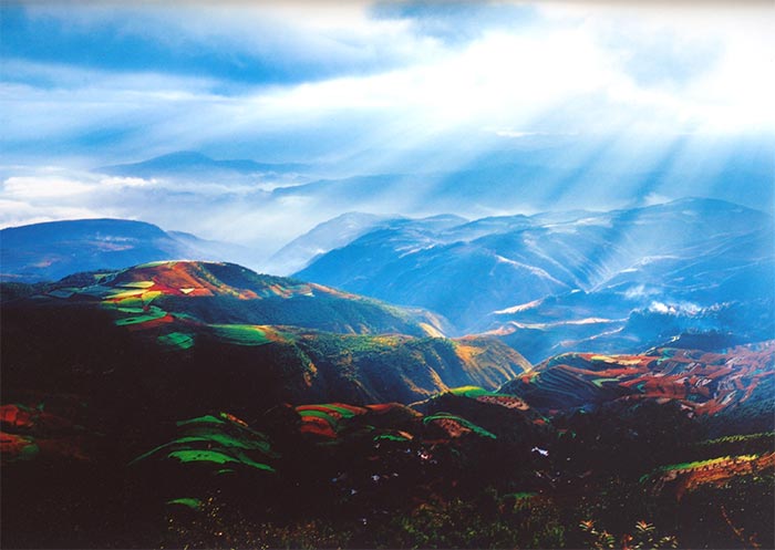 หงทูดี้ แหล่งท่องเที่ยวของเมืองตุงชวนนั้น เป็นดินแดนแผ่นดินสีแดงที่ถูกยกย่องว่าเป็นความแข็งแกร่งเปี่ยมด้วยพลังสีแดงสดใสมากที่สุดแห่งหนึ่งของโลก ซึ่งเป็นรองเพียงแห่งเดียวที่เมืองริโอเดจาเนโร ในประเทศบราซิล แต่พื้นดินสีแดงที่นี่จะมีความแตกต่างจากที่อื่นๆที่เป็นพื้นที่เพาะปลูกการเกษตรชนบท ไม่มีการแต่งเติมเสริมแต่งธรรมชาติดั้งเดิมอย่างใดๆ พันธุ์พืชต่างต่างที่ปลูกได้แก่มันเทศ,หัวไชเท้า,ข้าวบัควีทและข้าวสาลีในไร่ขั้นบันไดภูเขาปีละครั้ง สีสันต์ต่างๆจึงถูกแต่งแต้มจากดอกพันธุ์พืชหลากหลายชนิด ตัดกับสีขาวของเมฆและสีน้ำเงินเข้มพิเศษของท้องฟ้าเข้ม ทำให้ดูเหมือนภาพวาดในภาพม้วนโบราณที่สวยงามเกินจะพรรณนา เป็นจุดชมวิวทิวทัศน์ธรรมชาติสวยงามสุดๆมากกว่าสิบแห่งอาทิเช่นสวนแจ่มจรัส,ช่องเว้าลีปู,พื้นที่ลาดเอียงสีสันต์,ต้นไม้พิศวงพันปี,สันเขานักแสดง,หุบเขาอัสดง,ทุ่งจันทราและอื่นๆ ซึ่งดินแดนแห่งนี้จะเปลี่ยนสีสันต์ความสวยงามออกไปหลายแบบตามฤดูต่างๆในหนึ่งปี