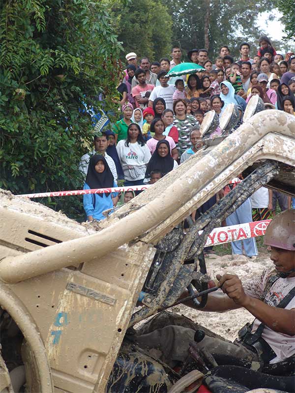 ช่วงบ่ายการแข่งขันวันแรกที่สนามลำไพลเป็นการแข่งขันเฉพาะรุ่นโอเพ่น ซึ่งเป็นสนามสร้างปนธรรมชาติในท้องทุ่ง มีกับดักหฤโหดบ่อน้ำโคลนสองแห่ง เนินสูงเนินต่ำชันๆ หลุมสลับสุดโหดน่าหวาดเสียวขำๆ เส้นทางสลาลมช่วยลุ้นช่วยผ่อนคลาย ทางคดเคี้ยวไปมาบนถนนดินเหนียววัวควายลื่นๆ สมรภูมิดูเหมือนง่ายๆ แต่กว่าจะผ่านไปได้มีลุ้นทุกครั้ง ที่นีมีผู้ชมมากมายทั้งชาวไทยมุสลิมและไทยพุทธ ต่างตื่นตาตื่นใจกับการบู๊ของจอมยุทธและนักบู๊รุ่นหลุดโลกของชาวใต้ ที่แผลงฤทธิ์สุดเดช ต่างงัดเอาวิทยายุทธออฟโรดมาใช้กันอย่างสุดฝีมือ การติดหล่มคาบ่อโคลนลึกและการพลิกตะแคงที่สนามลำไพรจึงเป็นเรื่องธรรมดา เสียงเฮให้กำลังใจทีมเจ้าถิ่นบู๊สู้แหลกจึงดังลั่นทุ่งมีเป็นระยะๆจนค่ำมืด ที่นี่จึงนับเป็นไฮไล้ท์โคตรมันส์ถึงใจแฟนออฟโรดของจริงวันนี้!