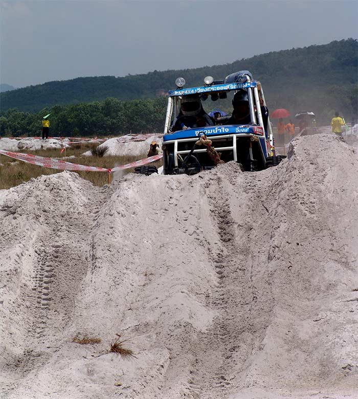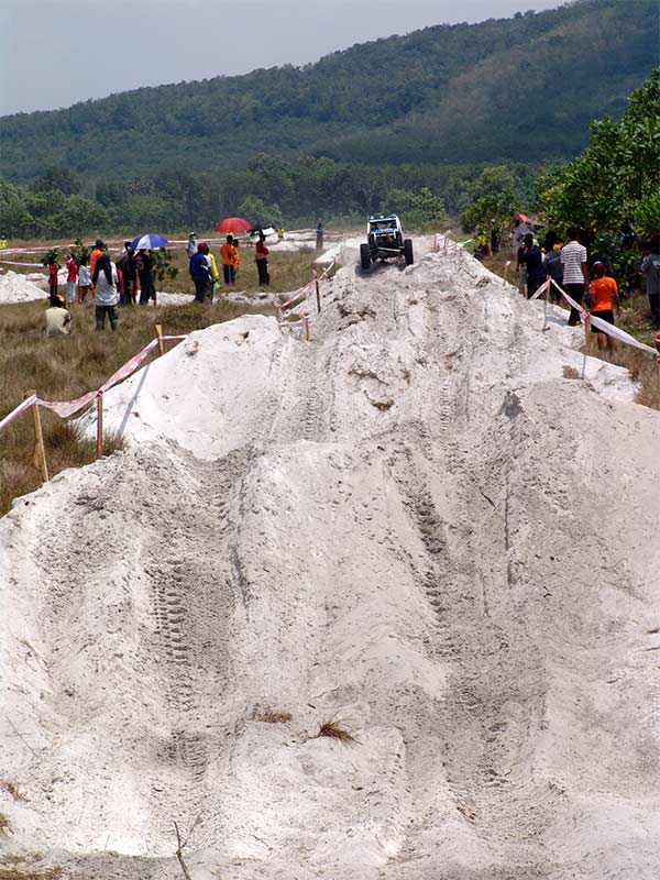 การแข่งขันเช้าวันที่สอง(15 มิ.ย.)จอมยุทธและนักบู๊ทุกรุ่นมาแข่งขันกันอีกคนละ 2 SS ที่สนามเกาะสะบ้า ต่างกันเพียงแต่แบ่งใช้สนามกันคนละด้านของถนนใหญ่ โดยรุ่นโอเพ่นอยู่ด้านซ้าย ส่วนรุ่นปีกนกและรุ่นคานแข็งอยู่ด้านขวา ซึ่งพื้นสนามทั้งสองเป็นทรายละเอียดสีขาวสะอาดตา ฟูแห้งลอยตัวเต็มที่ ทำให้เพิ่มความหนืดหนึบของล้อรถยนต์และพวงมาลัยที่จะหนักมากกว่าปกติและดูเหมือนจะมากกว่าทรายแถวๆริมทะเลอีกด้วย เทคนิคการใช้เกียร์และลมยางที่อ่อนมากๆจึงต้องถูกใช้ให้อย่างเหมาะสมเหมาะเจาะถูกต้องอย่างที่สุด ด้วยความยาวยืดของสมรภูมิแข่งไม่น้อยกว่า 1 ก.ม. ถูกบังคับให้ขับลัดเลาะเลี้ยวเคี้ยวคดไปมา ผ่านกับดักเนินทรายสูงต่ำไม่น้อยกว่า 50 ลูก และเนินระนาบเอียงทรายชวนให้ยวบยุบพลิกนอนตะแคงเล่น สมรภูมิเช้าวันนี้จึงดูเหมือนไม่ค่อยหร้อยถึงใจแฟนๆออฟโรดที่ยังคงแห่ตามมาดูกันมากมาย ด้วยเหตุเห็นเพียงเส้นทางยาววิ่งเร็วๆแบบสลาลม ซึ่งผู้ชมนั้นคงไม่ทราบว่าเหล่าจอมยุทธกำลังฝ่าสมรภูมิกับดักนรกทรายพรานพิฆาต ใครผ่านได้แสดงถึงเครื่องยนต์ ระบบครัชและระบบเกียร์โคตรอึดทนทานจริงๆ!