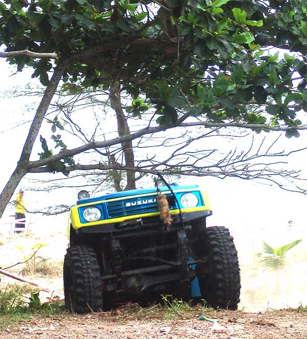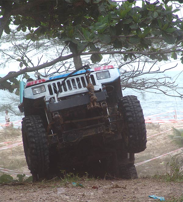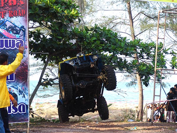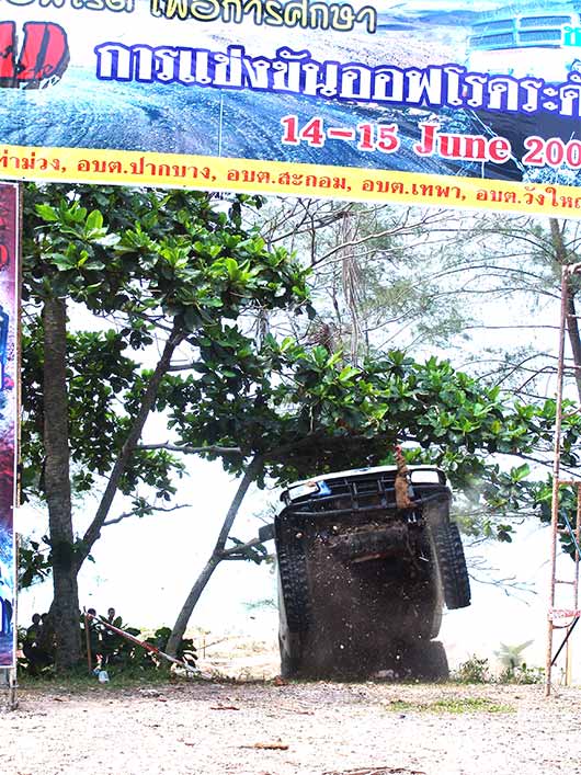 การแข่งขันเช้าวันที่สอง(15 มิ.ย.)จอมยุทธและนักบู๊ทุกรุ่นมาแข่งขันกันอีกคนละ 2 SS ที่สนามเกาะสะบ้า ต่างกันเพียงแต่แบ่งใช้สนามกันคนละด้านของถนนใหญ่ โดยรุ่นโอเพ่นอยู่ด้านซ้าย ส่วนรุ่นปีกนกและรุ่นคานแข็งอยู่ด้านขวา ซึ่งพื้นสนามทั้งสองเป็นทรายละเอียดสีขาวสะอาดตา ฟูแห้งลอยตัวเต็มที่ ทำให้เพิ่มความหนืดหนึบของล้อรถยนต์และพวงมาลัยที่จะหนักมากกว่าปกติและดูเหมือนจะมากกว่าทรายแถวๆริมทะเลอีกด้วย เทคนิคการใช้เกียร์และลมยางที่อ่อนมากๆจึงต้องถูกใช้ให้อย่างเหมาะสมเหมาะเจาะถูกต้องอย่างที่สุด ด้วยความยาวยืดของสมรภูมิแข่งไม่น้อยกว่า 1 ก.ม. ถูกบังคับให้ขับลัดเลาะเลี้ยวเคี้ยวคดไปมา ผ่านกับดักเนินทรายสูงต่ำไม่น้อยกว่า 50 ลูก และเนินระนาบเอียงทรายชวนให้ยวบยุบพลิกนอนตะแคงเล่น สมรภูมิเช้าวันนี้จึงดูเหมือนไม่ค่อยหร้อยถึงใจแฟนๆออฟโรดที่ยังคงแห่ตามมาดูกันมากมาย ด้วยเหตุเห็นเพียงเส้นทางยาววิ่งเร็วๆแบบสลาลม ซึ่งผู้ชมนั้นคงไม่ทราบว่าเหล่าจอมยุทธกำลังฝ่าสมรภูมิกับดักนรกทรายพรานพิฆาต ใครผ่านได้แสดงถึงเครื่องยนต์ ระบบครัชและระบบเกียร์โคตรอึดทนทานจริงๆ!