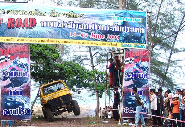 ช่วงบ่ายการแข่งขันวันแรกที่สนามลำไพลเป็นการแข่งขันเฉพาะรุ่นโอเพ่น ซึ่งเป็นสนามสร้างปนธรรมชาติในท้องทุ่ง มีกับดักหฤโหดบ่อน้ำโคลนสองแห่ง เนินสูงเนินต่ำชันๆ หลุมสลับสุดโหดน่าหวาดเสียวขำๆ เส้นทางสลาลมช่วยลุ้นช่วยผ่อนคลาย ทางคดเคี้ยวไปมาบนถนนดินเหนียววัวควายลื่นๆ สมรภูมิดูเหมือนง่ายๆ แต่กว่าจะผ่านไปได้มีลุ้นทุกครั้ง ที่นีมีผู้ชมมากมายทั้งชาวไทยมุสลิมและไทยพุทธ ต่างตื่นตาตื่นใจกับการบู๊ของจอมยุทธและนักบู๊รุ่นหลุดโลกของชาวใต้ ที่แผลงฤทธิ์สุดเดช ต่างงัดเอาวิทยายุทธออฟโรดมาใช้กันอย่างสุดฝีมือ การติดหล่มคาบ่อโคลนลึกและการพลิกตะแคงที่สนามลำไพรจึงเป็นเรื่องธรรมดา เสียงเฮให้กำลังใจทีมเจ้าถิ่นบู๊สู้แหลกจึงดังลั่นทุ่งมีเป็นระยะๆจนค่ำมืด ที่นี่จึงนับเป็นไฮไล้ท์โคตรมันส์ถึงใจแฟนออฟโรดของจริงวันนี้!