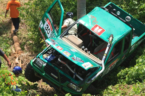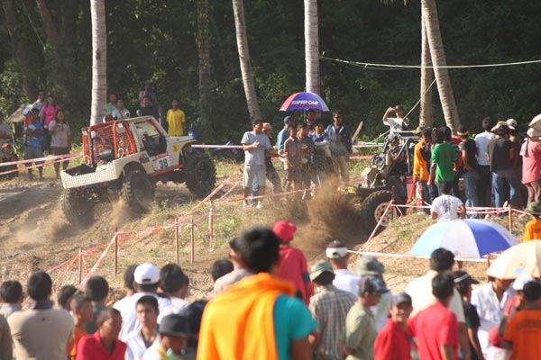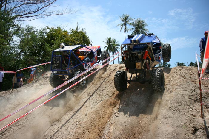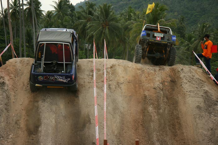 สนามแข่งขันดูเหมือนมีรูปแบบเรียบง่ายไม่หฤโหด แต่สนามทรายได้ปิดบังแฝงอันตรายร้ายแรงให้กับเครื่องยนต์และช่วงล่างอย่างรุนแรง กับดักเนินสูงต่ำมีหลอกหลุมดักอันตรายสำหรับรถมีความเร็วสูง ทำให้เพียงแค่เริ่มต้นแค่รอบโชว์พาแขกวีไอพี เกิดพลาดรถยนต์เหิรลอยเนินลงมาทิ่มหลุมดักเซียนออฟโรด เด้งตีลังกากลับหลัง ทำให้นักบู๊ที่จะลงแข่งต้องระมัดระวังจดจำกับดักนี้กันตัวเกร็ง และยังมีกับดักทางเลี้ยวโค้งเกือบหักศอกแคบๆหลายแห่ง ทำให้มีการชิงดำเฉือดเฉือนกันไปมา สร้างความสนุกสนานให้กับผู้ชมทั้งไทยและนักท่องเที่ยวต่างชาติทีมาเฝ้าชมดูกันหนาตาได้ตลอดเวลา ส่วนในสนามแข่งขันธรรมชาติในป่าสวนผลไม้และมะพร้าว กับดักต้นซุงมะพร้าวที่วางขวางช่วงขึ้นเนินสูง ทางเนินเอียงลาดชันบนยอดเนินอันตรายหลายแห่ง ทางร่องน้ำมีหินใหญ่บีบ ทางคดเคี้ยวสกัดรถเครื่องแรงทำให้หมดโอกาสใช้ความเร็วเต็มที่ สนามนี้SSม่วงมุดมีทีมนักบู๊ออฟโรดพลาดกลิ้งเหมือนลูกขนุนลงมาจากเนินเอียงยอดเนิน ลงมาติดคาต้นมะพร้าวรอดหวุดหวิดไม่อย่างนั้นจะตกลงมาอีกหลายตลบหากกลิ้งตกลงพื้นดิน และในSSเงาะป่าก็มีจอมยุทธออฟโรดตัวเก็งแชมป์พลาดพลิกกลิ้งเนินสูงเอียงทิ้งความหวังเอาใว้ในป่า การแข่งขันครั้งนี้ทีแรกจึงดูเหมือนจะเป็นเพียงแค่สมรภูมิขนมๆง่ายๆแต่กลับมันส์ถูกอกถูกใจส่ะใจแฟนๆออฟโรด ครบ น้ำ โคลน ดิน หิน ทราย ป่าและภูเขาสูงในสองสนาม และชมรมสมุยออฟโรดผู้จัดการแข่งขันสามารถแก้ไขเหตุการณ์ต่างๆรวมทั้งควบคุมเวลาการแข่งขันให้สามารถจบได้ตามเวลาที่กำหนดไว้ได้อย่างดีเยี่ยมทั้งสองวัน