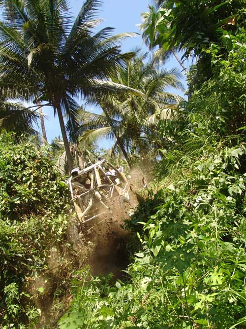 สนามแข่งขันดูเหมือนมีรูปแบบเรียบง่ายไม่หฤโหด แต่สนามทรายได้ปิดบังแฝงอันตรายร้ายแรงให้กับเครื่องยนต์และช่วงล่างอย่างรุนแรง กับดักเนินสูงต่ำมีหลอกหลุมดักอันตรายสำหรับรถมีความเร็วสูง ทำให้เพียงแค่เริ่มต้นแค่รอบโชว์พาแขกวีไอพี เกิดพลาดรถยนต์เหิรลอยเนินลงมาทิ่มหลุมดักเซียนออฟโรด เด้งตีลังกากลับหลัง ทำให้นักบู๊ที่จะลงแข่งต้องระมัดระวังจดจำกับดักนี้กันตัวเกร็ง และยังมีกับดักทางเลี้ยวโค้งเกือบหักศอกแคบๆหลายแห่ง ทำให้มีการชิงดำเฉือดเฉือนกันไปมา สร้างความสนุกสนานให้กับผู้ชมทั้งไทยและนักท่องเที่ยวต่างชาติทีมาเฝ้าชมดูกันหนาตาได้ตลอดเวลา ส่วนในสนามแข่งขันธรรมชาติในป่าสวนผลไม้และมะพร้าว กับดักต้นซุงมะพร้าวที่วางขวางช่วงขึ้นเนินสูง ทางเนินเอียงลาดชันบนยอดเนินอันตรายหลายแห่ง ทางร่องน้ำมีหินใหญ่บีบ ทางคดเคี้ยวสกัดรถเครื่องแรงทำให้หมดโอกาสใช้ความเร็วเต็มที่ สนามนี้SSม่วงมุดมีทีมนักบู๊ออฟโรดพลาดกลิ้งเหมือนลูกขนุนลงมาจากเนินเอียงยอดเนิน ลงมาติดคาต้นมะพร้าวรอดหวุดหวิดไม่อย่างนั้นจะตกลงมาอีกหลายตลบหากกลิ้งตกลงพื้นดิน และในSSเงาะป่าก็มีจอมยุทธออฟโรดตัวเก็งแชมป์พลาดพลิกกลิ้งเนินสูงเอียงทิ้งความหวังเอาใว้ในป่า การแข่งขันครั้งนี้ทีแรกจึงดูเหมือนจะเป็นเพียงแค่สมรภูมิขนมๆง่ายๆแต่กลับมันส์ถูกอกถูกใจส่ะใจแฟนๆออฟโรด ครบ น้ำ โคลน ดิน หิน ทราย ป่าและภูเขาสูงในสองสนาม และชมรมสมุยออฟโรดผู้จัดการแข่งขันสามารถแก้ไขเหตุการณ์ต่างๆรวมทั้งควบคุมเวลาการแข่งขันให้สามารถจบได้ตามเวลาที่กำหนดไว้ได้อย่างดีเยี่ยมทั้งสองวัน