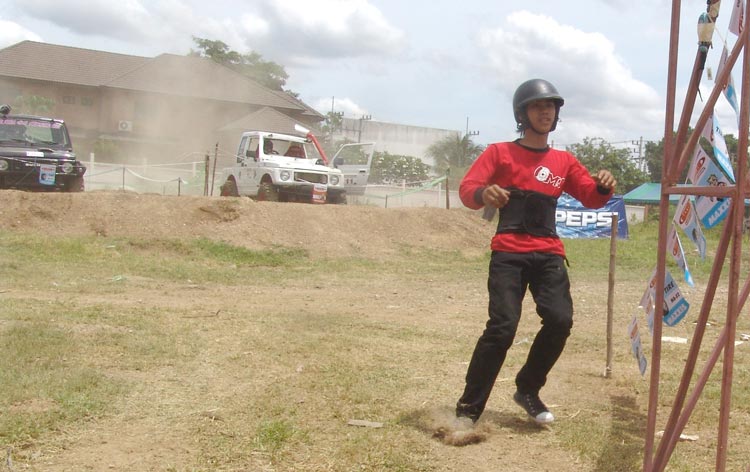 สนามแข่งขันทั้งสองวันเป็นสนามสร้างเลียนแบบธรรมชาติยาวประมาณ 400 เมตร เวลากำหนดให้ 5 นาที รูปแบบแข่งคู่ซ้ายขวา อุปสรรคส่วนใหญ่มีเนินต่ำๆดักสดุดหลายจุด เนินขวางยาวสลับ เนินลูกระนาด สะพาน และทางโค้งแคบและกว้าง ซึ่งนักบู๊ออฟโรดต้องลงแข่งขันทั้งหมดวันละ 4 SS รวม 8SS โดยการแข่งไปกลับและย้อนกลับไปมาจนครบทุกSS ซึ่งสนามสร้างหนนี้จะดัดแปลงมาจากปีที่แล้ว ต่างกันตรงที่ไม่มีบ่อน้ำโคลนลึกที่เปลี่ยนมาเป็นสะพานแคบ ดูเหมือนสนามนี้จะดูง่ายๆเบาหวิว แต่การแข่งขันก็ได้ความมันส์เร้าใจเหาะเหิรบินกระโจนเนินกันไม่ยั้งเท้า เชือดเฉือนแพ้ชนะกันท่ามกลางเสียงเชียร์อย่างสนุกสนาน ช่วงวันแรกมีนักบู๊ออฟโรดดีเดือดลุยแหลกพลาดรถยนต์พลิกตะแคงเค้เก้ติดพื้นไปสองทีม และวันสุดท้ายการแข่งขันก็ได้จบลงอย่างสมบูรณ์มีสีสันต์ ด้วยน้ำใจคืนน้ำใจจากเหล่าเพื่อนจากแดนไกลอุบลราชธานี กัณทรลักษณ์ ศรีสะเกษ สุรินทร์ ชลบุรี สมุทรปราการและกทม