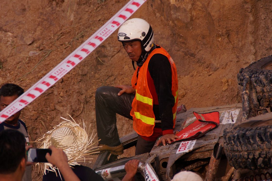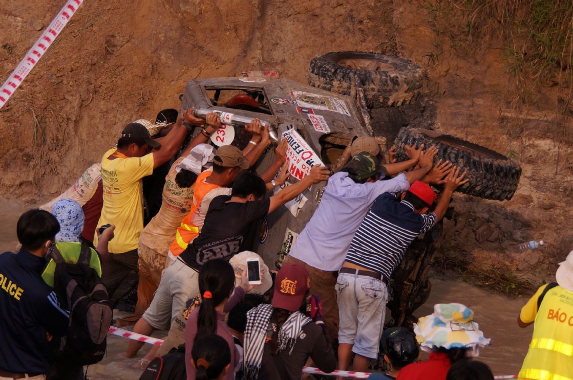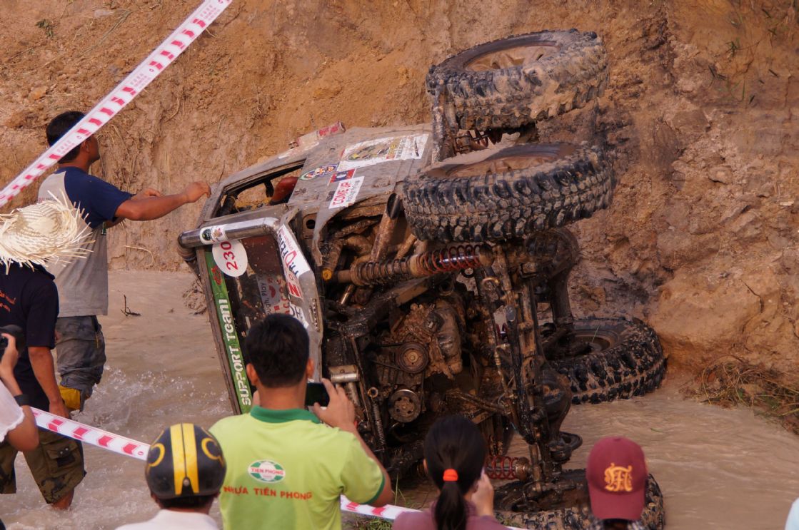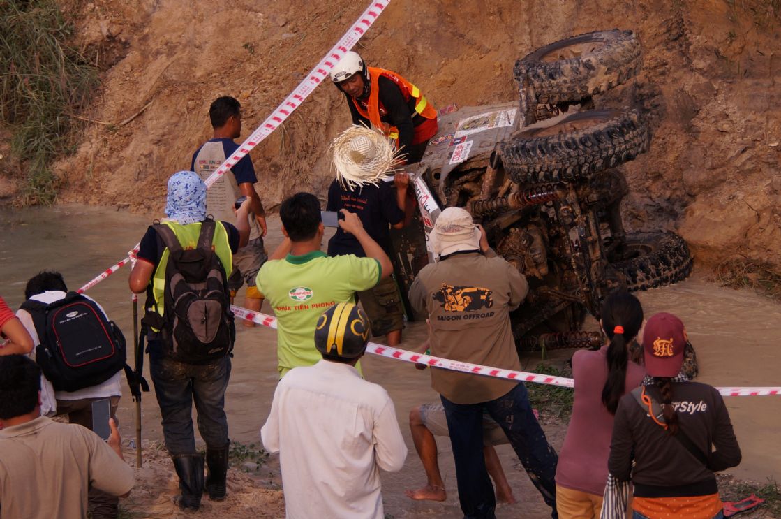 S16 เส้นทางยาวประมาณ 200 เมตร เวลากำหนดให้ 20 นาที เป็นสมรภูมิส่งท้ายออฟโรดโค-ตระ-ระหฤโหด ข้ามลำธารน้ำตื้น ขึ้นผาดินชันหน้าแหงนตั้งบ่าเกือบเก้าสิบองศา สูงมากประมาณ 15 เมตร ทุกทีมต้องใช้วิ้นช์ดึงรถยนต์หิ้วขึ้นไปบนเนินผาสูงทั้งคัน ลงมาได้ต้องข้ามผ่านลำธาร มีโคลนลึกดักก่อนขึ้นฝั่ง แล้วขึ้นเนินสูงชันยาว ลงเนินไปเส้นชัย ดังนั้นSSนี้จึงกลายเป็นสุสานวิ้นช์และสายสลิงเชือกหรือลวดเคเบิ้ล คนและรถยนต์ต้องเป็นหนึ่งเดียวกันอย่างแท้จริง ชัยชนะจะขึ้นอยู่กับผู้ช่วยคนขับโคไดร้ว์เวอร์มากที่สุดด้วย ปรากฎว่าหลังจากหลายทีม รถยนต์ทะยอยพังและDNFกันระเนระนาด รวมทั้งตัวเต็งทีมเก่งของมาเลเซียและทีมเวียดนาม ! รถยนต์หมายเลข 135 Nguyen Van Giang / Nguyen Hung Phong Vietnam teams Passing SS16 เป็นทีมที่สาม สุดยอดหนึ่งในสามทีมที่ผ่านSSนี้ได้!