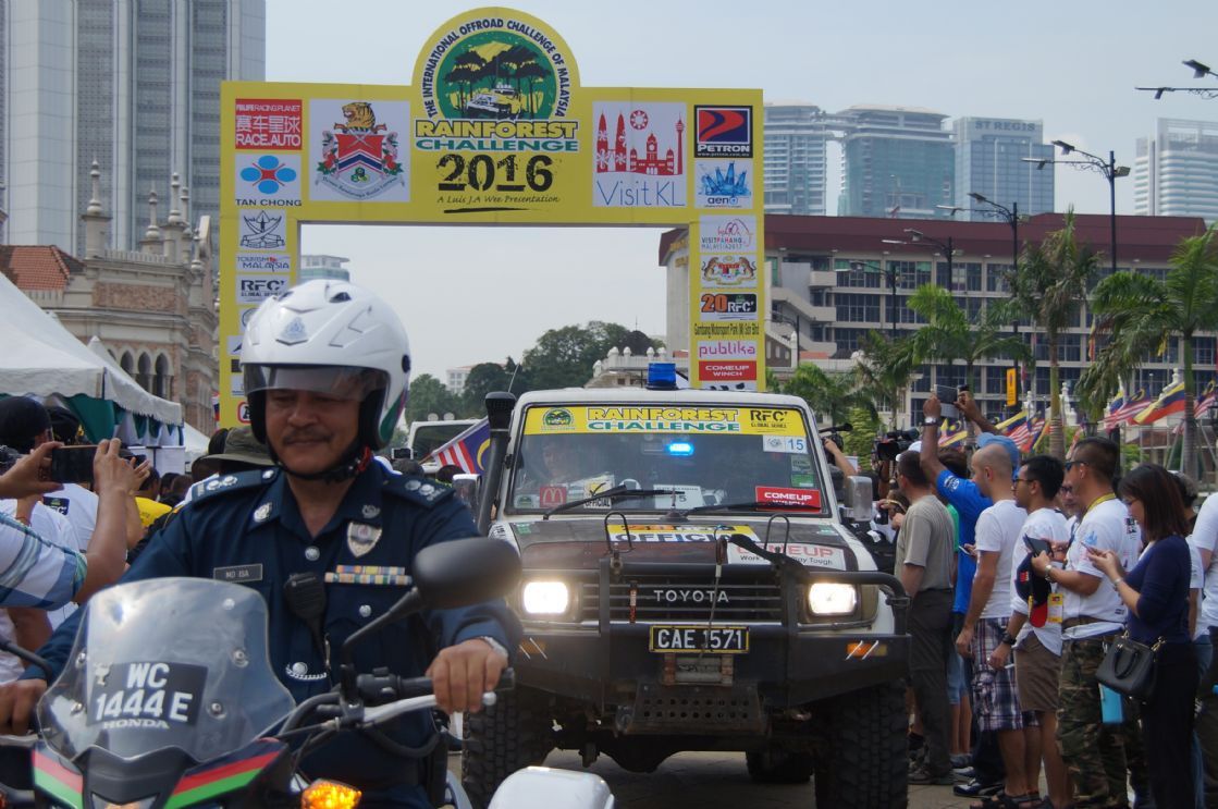 Open ceremony flag off พิธีเปิดตีธงปล่อยตัวผู้เข้าแข่งขันและผู้ร่วมงานทั้งหมด บริเวณลานประกาศอิสระภาพดาตารานเมอร์เดก้า at Dataran Merdeka หน้าวังสุลต่านอับดุลซามัด Sultan Abdul Samad กลางเมืองกัวลาลัมเปอร์ มีพิธีการตีธงปล่อยรถยนต์ผู้เข้าร่วมการแข่งขันทั้งหมด และออกเดินทางไกลไปประมาณ 260 ก.ม.k.m. มุ่งหน้าไปเมืองกวนตัน to Kuantan ซึ่งเป็นเมืองหลวงของรัฐปะหัง และนับเป็นรัฐที่ใหญ่ที่สุดบนมาเลเซียตะวันตก ระหว่างการเดินทางทุกคนได้รับการดูแลรักษาความปลอดภัยอย่างดีตลอดการแข่งขัน ทั้งทางบกด้วยรถยนต์ รถมอเตอร์ไซค์ และทางอากาศด้วยเฮลิคอปเตอร์ จากตำรวจวังมาเลเซีย Security by The Royal Malaysian Police ค่ายบูกิตกาลิง Bukit Galing camp เมืองกวนตัน
