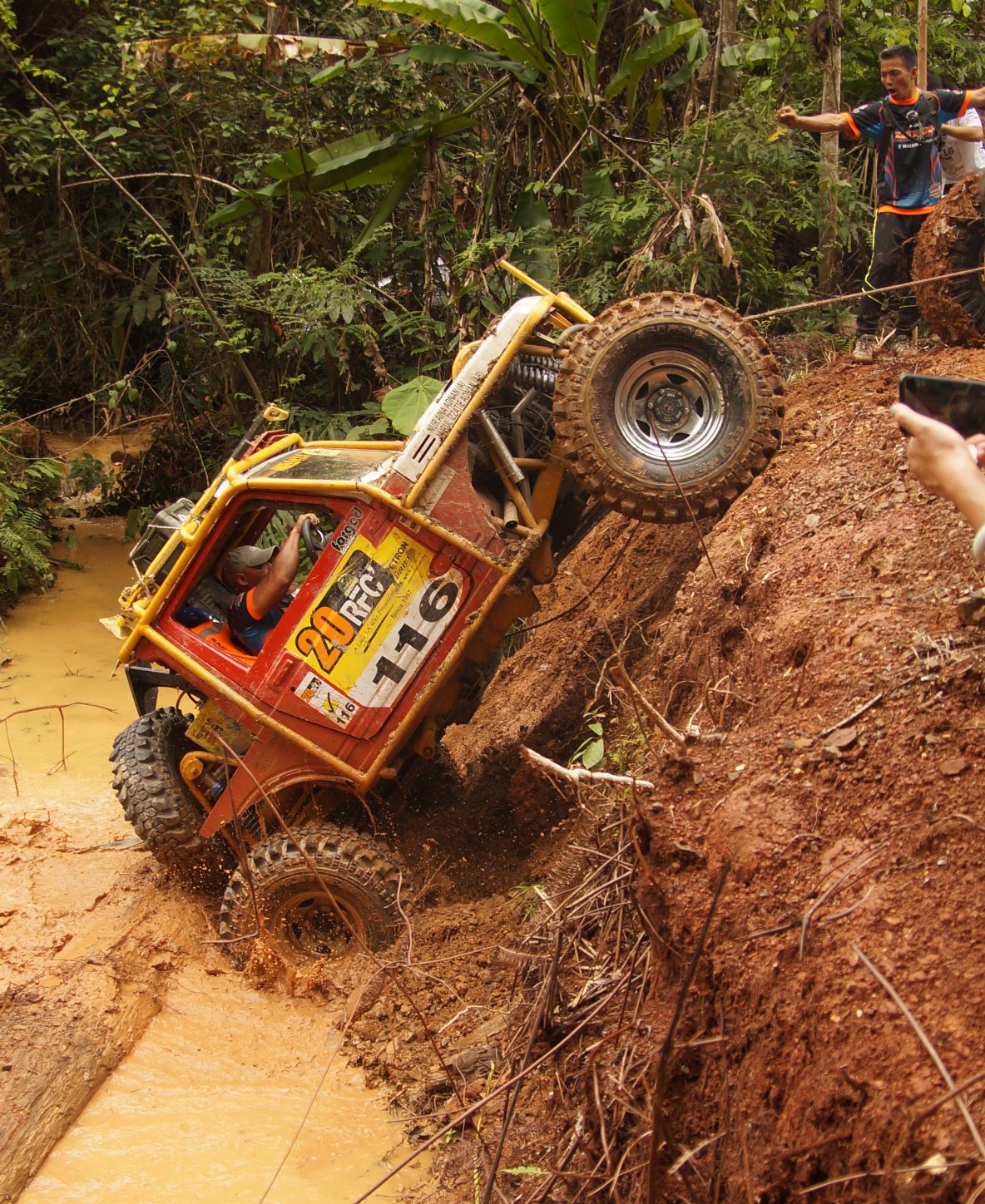 2 Dec, D-Day for the 27 remaining teams with machines and winches in good working order to enter this dreaded zone at Kabang with medic, communications crew and sweeper teams. In groups of two cars, they went to complete this route where the ordinary becomes extraordinary, where teamwork is everything to get out. Its the place where the adage: When the Going Gets Tough, the Tough Gets Going and its a place to be prepared for Anything Goes.