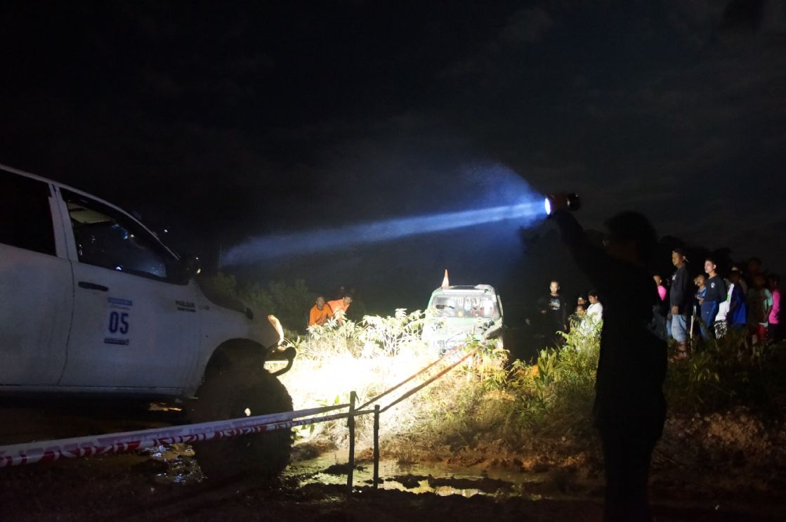 10 ก.พ. การแข่งขันวันแรก เป็นสมรภูมิมันส์เร้าใจเวลากลางคืน ไนท์SS จำนวน 1 SS รูปแบบแข่งขันเป็นคู่ กับดักอุปสรรคครบเครื่องออฟโรด มีเนินขวาง ทางโค้ง หลุมลึก โคลนเละ และเนินบิน เหล่าจอมยุทธและนักบู๊ออฟโรดต่างไม่มีใครออมฝีมือ บู๊เต็มที่ ทำให้ได้เสียงเฮเชียร์จากผู้ชมรอบสนาม มีความสุขและตื่นเต้นจากการชมการแข่งขันบู๊ออฟโรดต้องเหิรบินได้Car no 52 วินิจ วาสยศ / จิระ ผิวบาง ทีมไฮวิ้นช์ เจลเจ้ทปลาทู