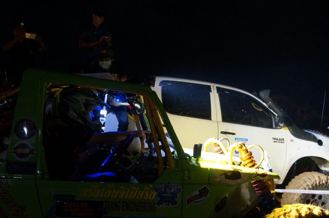 10 ก.พ. การแข่งขันวันแรก เป็นสมรภูมิมันส์เร้าใจเวลากลางคืน ไนท์SS จำนวน 1 SS รูปแบบแข่งขันเป็นคู่ กับดักอุปสรรคครบเครื่องออฟโรด มีเนินขวาง ทางโค้ง หลุมลึก โคลนเละ และเนินบิน เหล่าจอมยุทธและนักบู๊ออฟโรดต่างไม่มีใครออมฝีมือ บู๊เต็มที่ ทำให้ได้เสียงเฮเชียร์จากผู้ชมรอบสนาม มีความสุขและตื่นเต้นจากการชมการแข่งขันบู๊ออฟโรดต้องเหิรบินได้! Car no 44 Alex Mou Chan / ศราวุธ อักษรภักดิ์ ทีมยูเครน กลัวที่ไหน ภูเก็ต Alex Mou Chan / Sarawut Aksornpak Team Ukraine Klua Thee Nai Phuket