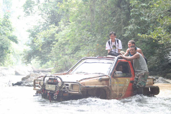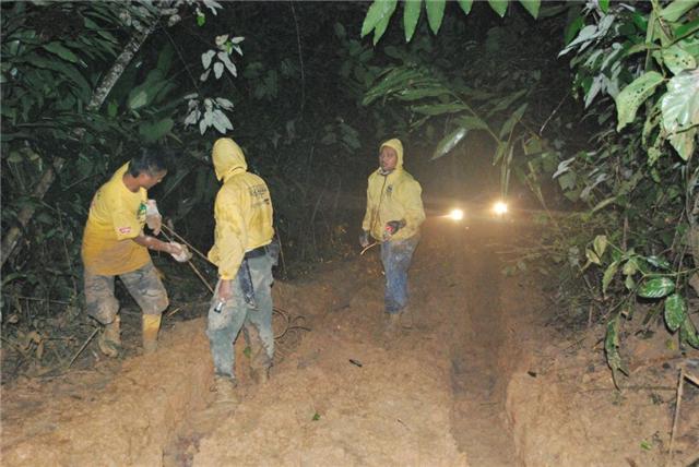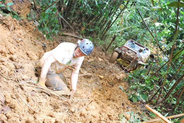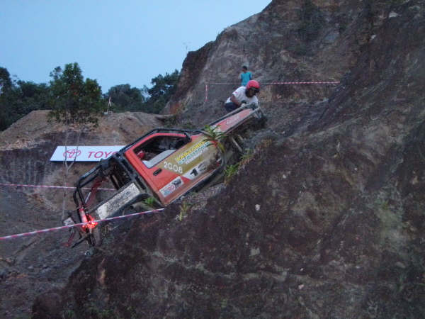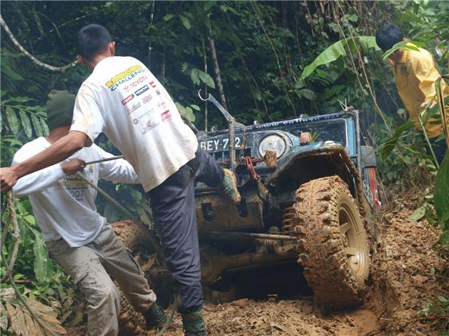ความประหลาดใจยิ่งมากขึ้น!เดิมการคาดเอาใว้ว่าเส้นทางไปแคมป์ไซค์ที่พักยาวไกลประมาณเพียง15 ก.ม.นั้นง่ายๆ บัดนี้ฝนได้เปลี่ยนแปลงไปหมดแล้ว หลายส่วนของเส้นทางถนนได้กลับกลายเป็น จ้าวแห่งร่องถนนลึกหฤโหด และทางขึ้นภูเขาได้กลายเป็นการไต่ต่อสู้ดิ้นรนตะเกียกตะกายขึ้นไปบนยอดเขา รวมผสมกับเสียงโอดครวญผิดหวังของเหล่าบรรดาจอมยุทธและนักบู๊ออฟโรด เมื่อได้เจอดินถล่มขัดขวางอยู่ที่ระหว่างกลางทางของแคมป์ไซค์ที่พัก มันเป็นทั้งการขับรถและกู้รถยนต์ตลอดคืนอันยาวนาน
