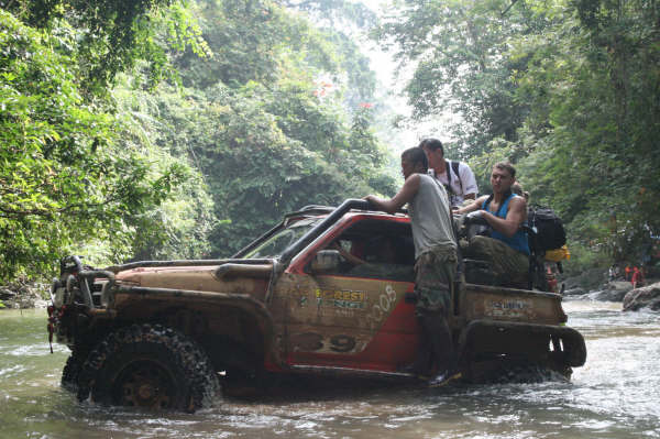แม่น้ำสองสาย(สุไหง เทรังกานู มาติSg Terengganu Mati และสุไหง เพลากองSg Pelaggong)ได้พิสูจน์ความหฤโหดมากยิ่งกว่าความเก่งกล้าบ้าบิ่นของสองหน่วยทะลวงล่วงหน้ากล้าตายสะเก๊าท์กลุ่มเอและบี จนไม่อาจทัดเทียมธรรมชาติได้ ตั้งแต่ความสูงชันของฝั่งแม่น้ำมีทั้งโคลนลึกและหน้าตัดเป็นทางยาวสูงเกือบหนึ่งเมตร ซึ่งสามารถจมรถยนต์ออฟโรดขนาดใหญ่หนักร่วม 2 ตันได้อย่างง่ายๆ จึงต้องใช้เวลาสู้ยาวนานนับชั่วโมงถึงผ่านไปได้ เมื่อรวมกับการเดี้ยงของรถยนต์ออฟโรดที่สู้จนพังด้วย ตอนนี้เส้นทางเดินทางหฤโหดได้ทำโทษทั้งคนและรถยนต์ที่กล้าท้าทายเข้าให้แล้ว และสะเก๊าท์กลุ่มบีนี้ได้เป็นกลุ่มที่รอดักคอยช่วยเหลือสะเก๊าท์กลุ่มซี และเหล่าจอมยุทธนักบู๊ออฟโรดซึ่งกำลังเดินทางลุยมาทางใต้