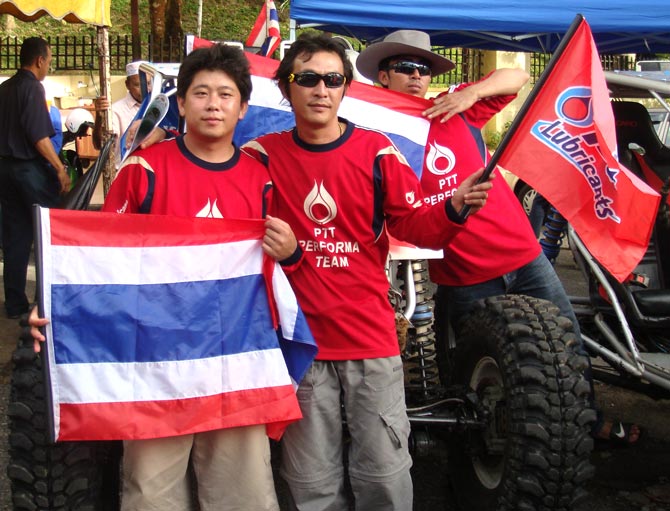 ตัน อึง โจ(ตนนั่งด้านขวา) / ตัน ชุน หง (คนนั่งด้าซ้าย)ทีมป.ต.ท. ซึ่งตัน อึง โจ หรืออาหลู่ เป็นจอมยุทธออฟโรดมือหนึ่งสูงสุดของวงการออฟโรดมาเลเซีย ทีมีศักดิ์ศรีถึงแชมป์ประเทศมาเลเซียและแชมป์ออฟโรดโลกประเภทOver All ในรายการแข่งขันออฟโรดนานาชาติ Rain Forest challenge !