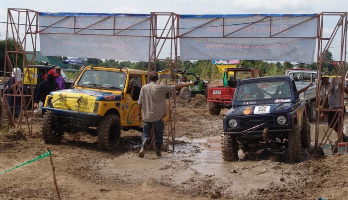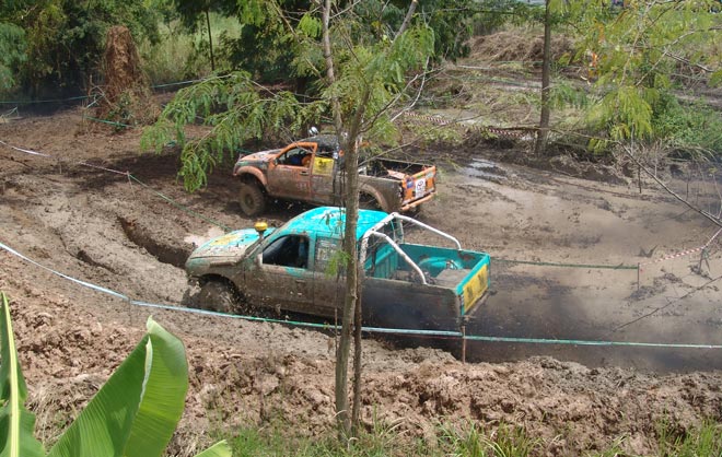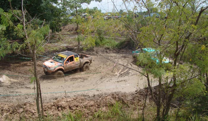 สนามแข่งขันเป็นแบบคู่ช้อตกันวันตวลทั้งสองวันรวมทั้งหมด 4SS มีลักษณะรูปแบบทั้งสนามธรรมชาติผสมกับสนามสร้างเลียนแบบธรรมชาติ ซึ่งธัชกร ทรงศิริ , ช่างโต 4x4 และณรงค์ ทองแก้ว เป็นผู้ร่วมกันสร้างสนาม กำหนดให้อุปสรรคมีทั้งทางลงชันยาว ท้องร่องน้ำใหญ่ โค้งหักศอก โค้งยาว เนินสูงชั้น เนินขวางลูกคลื่น บ่อน้ำโคลนตื้น และหลุมสลับเป็นต้น แต่หลังจากที่มีฝนตกเทลงมาอย่างหนักก่อนการแข่งขันหนึ่งวัน ทำให้สนามแข่งที่มีพื้นดินเหนียวเกือบทั้งหมด ได้เปลี่ยนสภาพสนามยากหฤโหดต่างไปจากเดิม ทำให้เกิดปัญหาที่คาดไม่ถึงและสร้างความมันส์เละเทะเฉอะแฉะของการต่อสู้ผจญภัยแบบออฟโรดตื่นเต้นและเร้าใจในโคลนเลนได้อย่างสนุกสนานน่าหวาดเสียวเกือบตลอดเวลา!