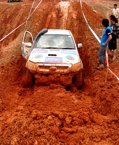 สุดยอดรถยนต์ยุคใหม่วีโก้เจอหฤโหดไปไม่รอด ในกับดักเลนที่สาม บริเวณเนินขวางมีดินหนืดเหนียวชุ่มน้ำ! จ้าวยุทธจักรออฟโรด สมศักดิ์ มุลิ / ธนัสชัย มุลิ ทีม PTT Performa