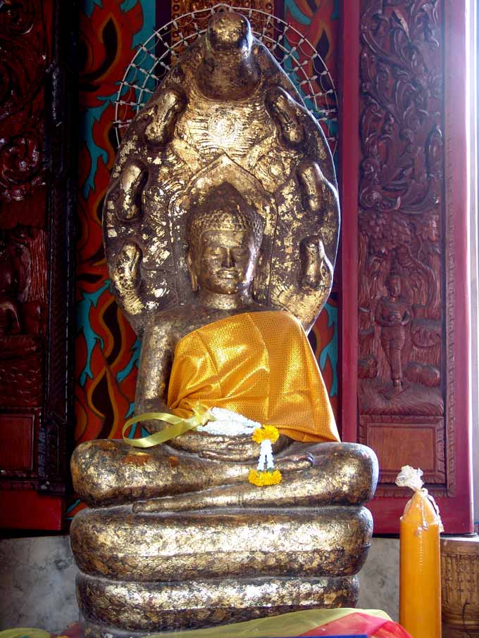 พระพุทธรูปนาคปรกเก่าแก่สวยงามภายในเจดีย์