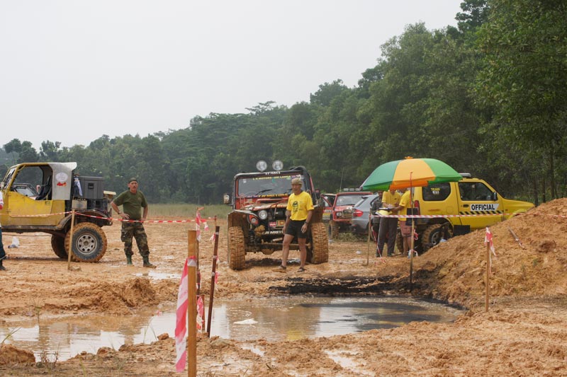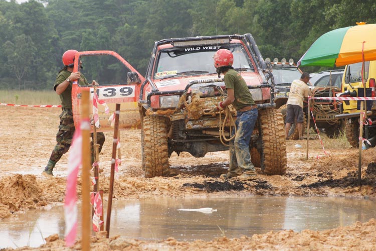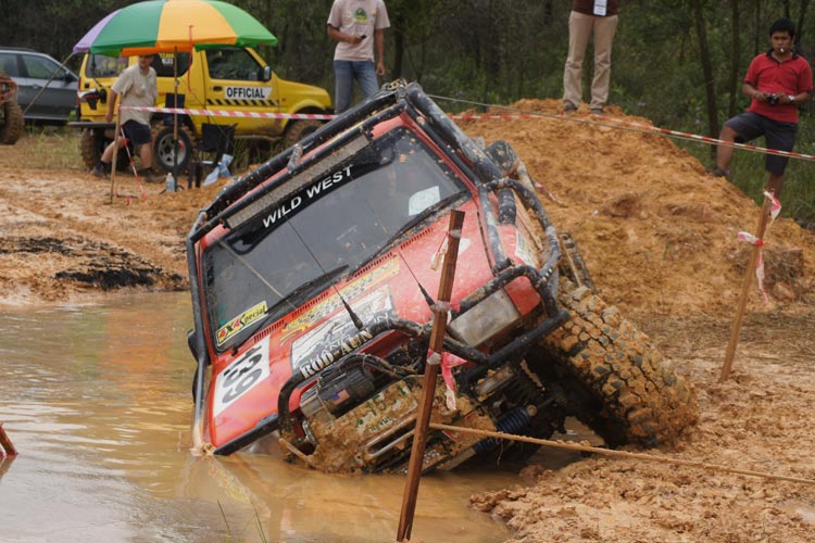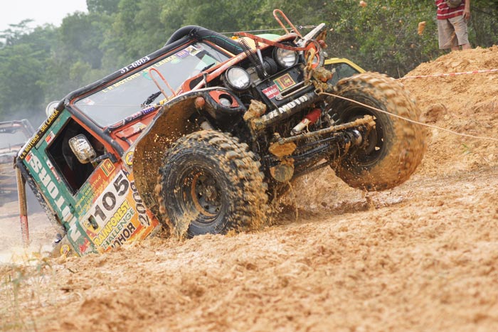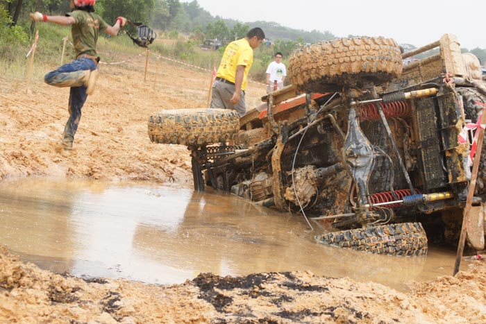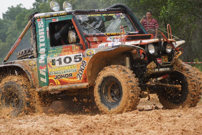 Jumping up from the tough pond by very good winching ! Off roader fighter Navin Surath Marapana / K.M. Indika Sanjaya Sri Langa team no 105
