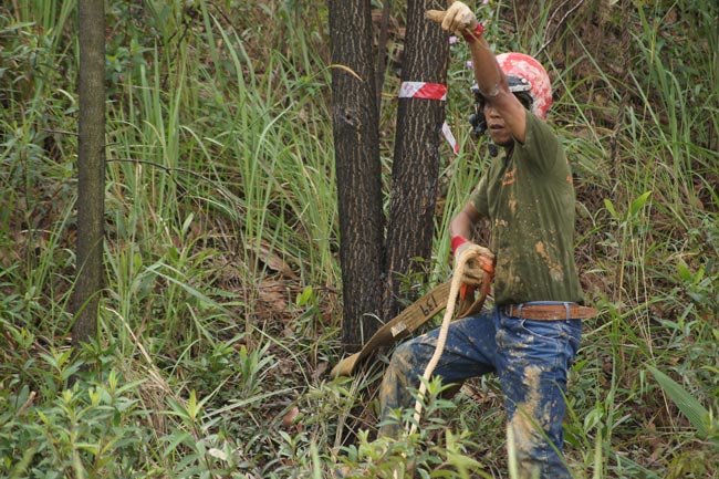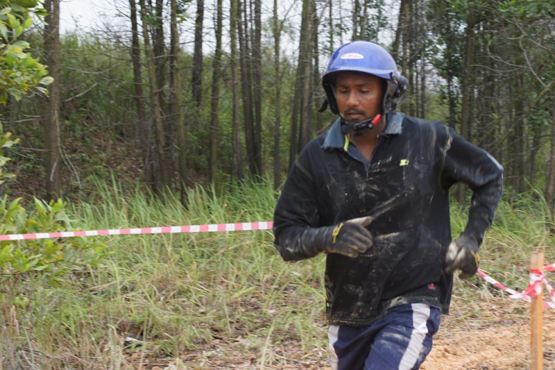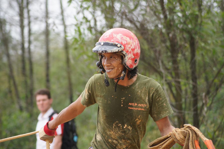 ผู้ช่วยคนขับต้องทำหน้าที่เอาสลิงไปคล้องต้นไม้ให้เร็วที่สุดเพื่อวิ้นช์!จอมยุทธออฟโรดไข่มุก นาวิน สุราช มาราพานา ทีมศรีลังกา