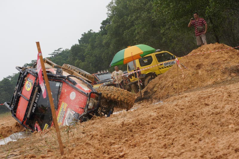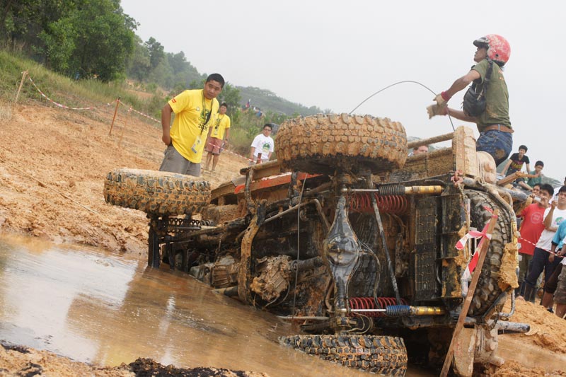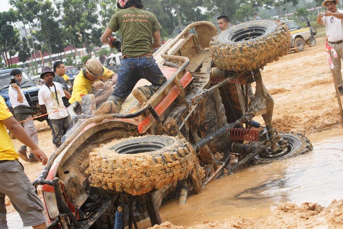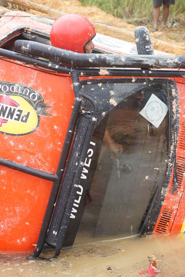They couldn't see trap line under the water and rocket winch ran very fast so it made miss take the car over turn promptly ! Rodney B Caldwell / Bundit Samrongkanok America - Thai team