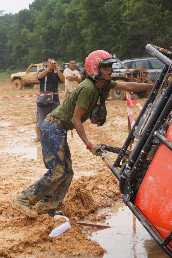 Co-driver have to do very fast for using winch! Off roader fighter Navin Surath Marapana Sri Langa team no 105
