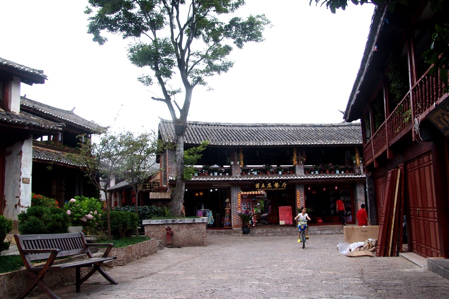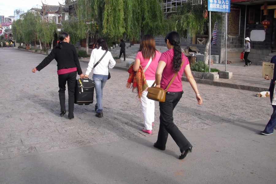 เส้นทางถนนโบราณเดินไปโรงแรมที่พักอยู่ในเมืองเก่าลี่เจียง จะเป็นหินค่อนข้างขรุขระอายุหลายร้อยปี ล้อลากกระเป่าบนพื้นไม่ได้ หากฝืนลากล้อกระเป๋าต้องพังกระจายหมด!
