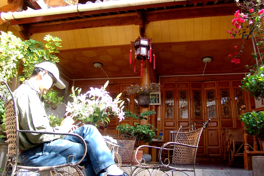 สาวเจ้าของโรงแรม “เหอ หัว เช็ง He Huasheng” เป็นนักร้องเพลงโบราณของชาวน่าซี แสดงในโรงแสดงดนตรีโบราณที่ใจกลางเมืองเก่าลี่เจียง ค่าเข้าไปชมคนละ 170 หยวน หรือประมาณ 700-800 บาท มีภาพประธานาธิบดีจีนเคยมาชมการแสดงประดับติดอยู่บนข้างฝาหน้าห้องแรดบินและอาจารย์ไรโน การมาพักที่นี่จึงได้สัมผัสกับคนพื้นที่แท้ๆของเมืองลี่เจียง!