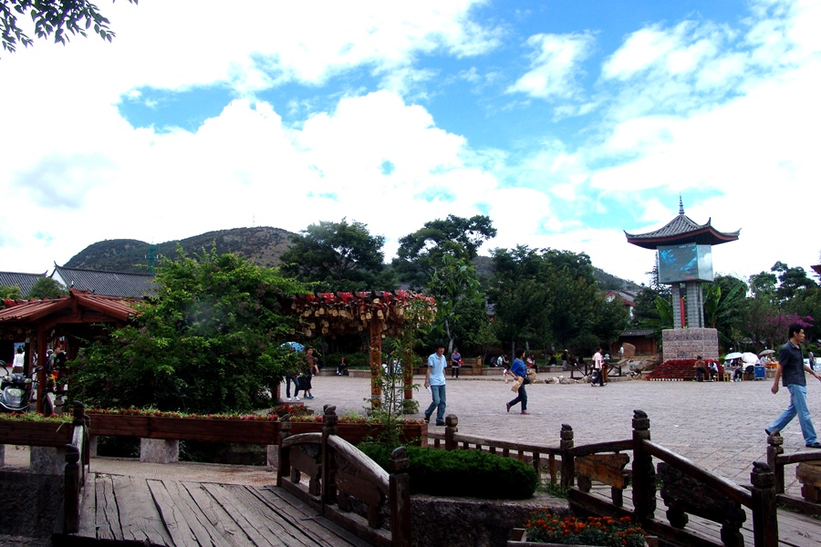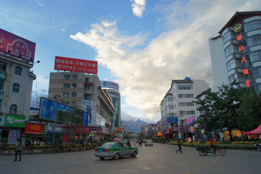 “เมืองลี่เจียง”เป็นชื่อที่ได้เรียกขานกันมานานนับพันปีด้วยมีแม่น้ำจินชาล้อมรอบ ตั้งอยู่ที่ทิศตะวันตกเฉียงเหนือของมณฑลยูนนาน บริเวณปลายสุดตีนเทือกเขาด้านทิศใต้ของภูเขาหิมาลัย รวมทั้งเป็นโซนกึ่งกลางวัฒนธรรมระหว่างแชงกรีล่า – ยูนนาน – ซื่อชวน – ทีเบต ห่างจากเมืองคุนหมิงประมาณ 640 ก.ม. มีพลเมืองไม่ถึงสองแสนคน ส่วนใหญ่เป็นชาวชนเผ่าน่าซี นอกนั้นเป็นชาวเผ่ายิ , ลีซึ ,ปู๋ไม ,เชียง , ทิเบต และไป๋ เป็นต้น เมืองลี่เจียงแบ่งออกเป็นเมืองเก่าและเมืองใหม่ ภาพนี้เป็นทิวทัศน์เขตเมืองใหม่