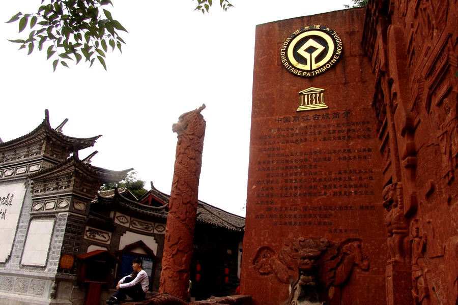 สัญญักษณ์หน้าเขตเมืองเก่าลี่เจียงที่ได้ประกาศการเป็นมรดกโลกจากองค์การยูเนสโก!