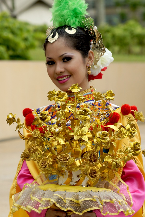 สาวสวยอัญเชิญดอกไม้ทองรับเสด็จ!