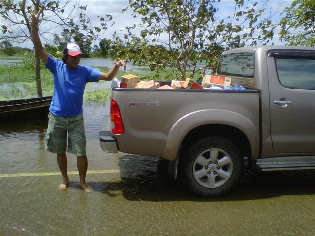 สุดท้ายตกลงไปกันวันอาทิตย์ที่16ตุลาคม2554 เข้าบริจาคที่ศูนย์ศิลปชีพบางไทรเรื่อยไปข้างใน ซึ่งมีทีมกู้ภัยสว่างคุณธรรมจากชัยภูมิเป็นหัวเรือหลัก โดยการประสานงานจากพี่ทอม