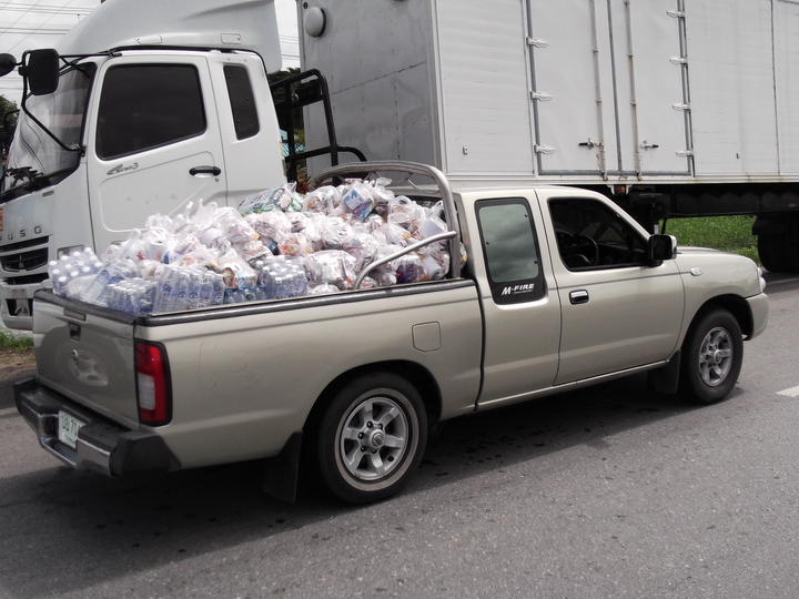 เงินที่ได้มาจากพวกเราชาวแปดวาล์วและผองเพื่อนได้แปรสภาพเป็นสิ่งของเหล่านี้เพื่อนำไปยังชีพแก่ผู้ประสบภัย