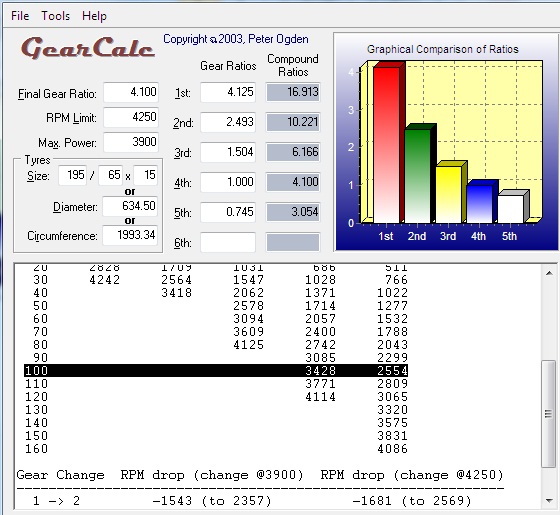 ผมใช้เกียร์คอมฯ 2.5 เฟือง 3.9 ความเร็ว 100 รอบประมาณ 2250 เองครับ