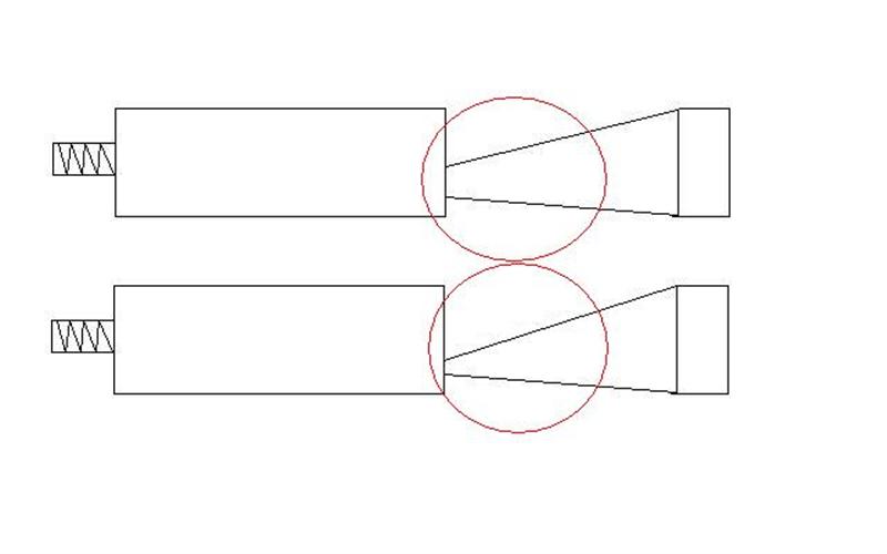 ชัดเลยครับ อันซ้ายช่วงชักยาวกว่า และแกนเว้ากว่าอย่าเห็นได้ชัด (เพราะมีตัวเทียบนะครับถึงดูออก) แต่ถ้าคนที่ไม่เคยเห็นล่ะก็อาจถูกหลอกเอาได้ง่าย ๆ เลยครับผม