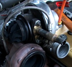 --อีกนิดครับท่อไหลกลับลองเอากรวยต่อสายยางแล้วเอาน้ำมันเทลงไปดูครับว่ามันลงดีหรือเปล่าครับ เพราน้ำมันที่มาเลี้ยงแกนเทอร์โบนั้นมาจากปั้มน้ำมันเครื่องจึงมีแรงดันมาก แต่ท่อไหลกลับมันไหลลงตามแรงโน้มถ่วงของโลกเพราะฉนั้นต้องให้มันลงได้สะดวก ลองดูครับไม่เสียหาย ยังไงรอฟังท่าต่อไปครับ