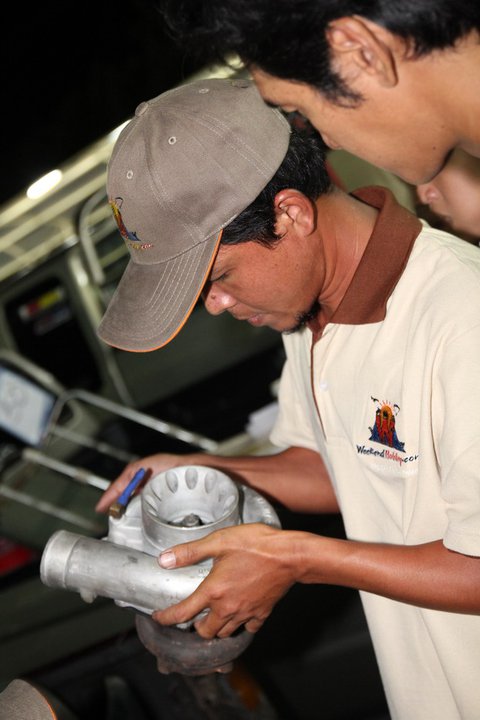 ทีมงานช่วยกันเปลี่ยนล้อ