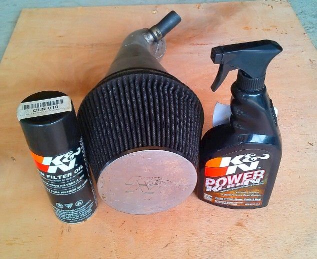 กรองอากาศ K&N พร้อมน้ำยาเคลือบและน้ำยาล้าง ใช้งานได้อีกหลายครั้ง ปากกรวยอลูมิเนียม ขนาด 6 นิ้ว ท่อทางเข้าขนาด 2.2 นิ้ว มีรูสำหรับยึดกับหลักยางกันสะบัด ราคา 900 บาท ท่านใดสนใจนำไปใช้งานติดต่อ 0957126052