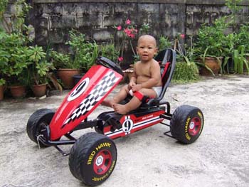 ผมว่าไช้โครงของลูกพี่ได้นะครับ ว่าแต่ทำไว้ไห้ลูกเล่นหรอครับ ถ้าลูกเล่นผมว่า ไช้มอเตอร์ก็ได้ครับ ซื้อมอเตอร์ที่ไส่มอไซต์คันเล็กๆอะครับ แล้วก็แบตซัก2-3ก้อน แล้วก็ซื้อชุดคันเร่ง แค่นี้ลูกพี่ก็สนุกแล้วครับ แถมปลอดภัยกว่าเครื่องอีกครับ ที่ผมพูดมาเป็นความคิดผมนะครับ ถ้าไม่เห็นด้วยก็ต้องขอโทษด้วยครับ