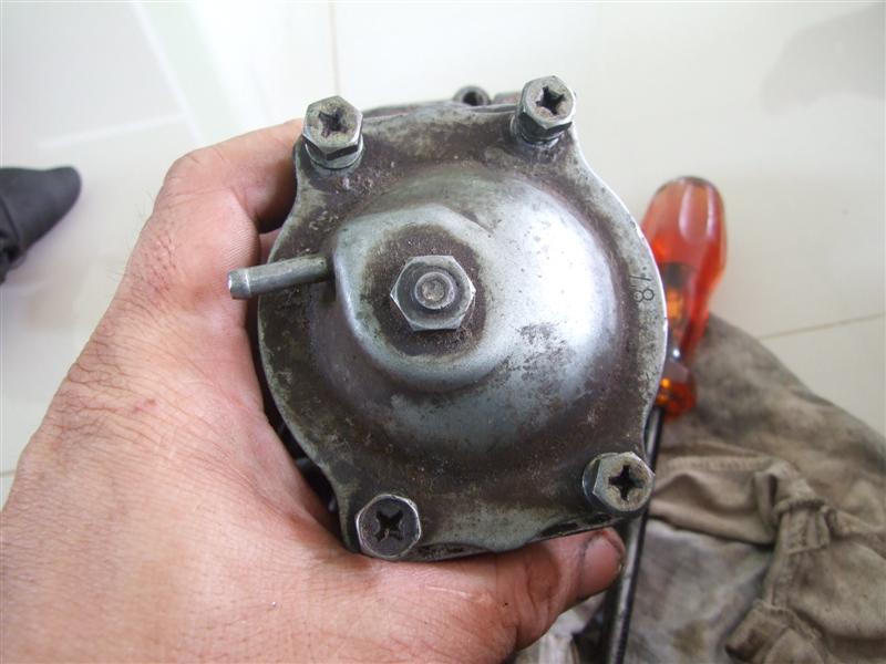ขั้นตอนที่ 3 ถอดน๊อตตรึงสลักกระเดื่องครับ ทั้งสองด้านของฝาปั๊มนะครับ จะอยู่ตรงตำแหน่งแกนของกระเดื่องที่อยู่ใต้ฝาปั๊มครับผม