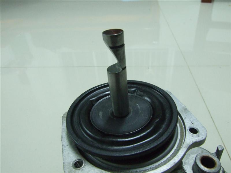 นี่ครับสลักกาวานา เห็นมั๊ยครับว่ามันขวางอะไรอยู่ ขวางตัวเพิ่มน้ำมันครับ ถ้าเป็นปั๊มเดิมไม่มีฝาปั๊มโบตัวนี้จะเป็นตัวจำกัดการจ้ายน้ำมันไม่ให้จ่ายมากเกินไปครับ แต่ถ้าเป็นฝาปั๊มโบตรงนี้จะถูกควบคุมด้วยสลักที่ต่ออยู่กับฝาปั๊มโบครับ ย้อนกลับไปดูข้างต้นนะครับจะได้เข้าใจการทำงานให้ดีขึ้น