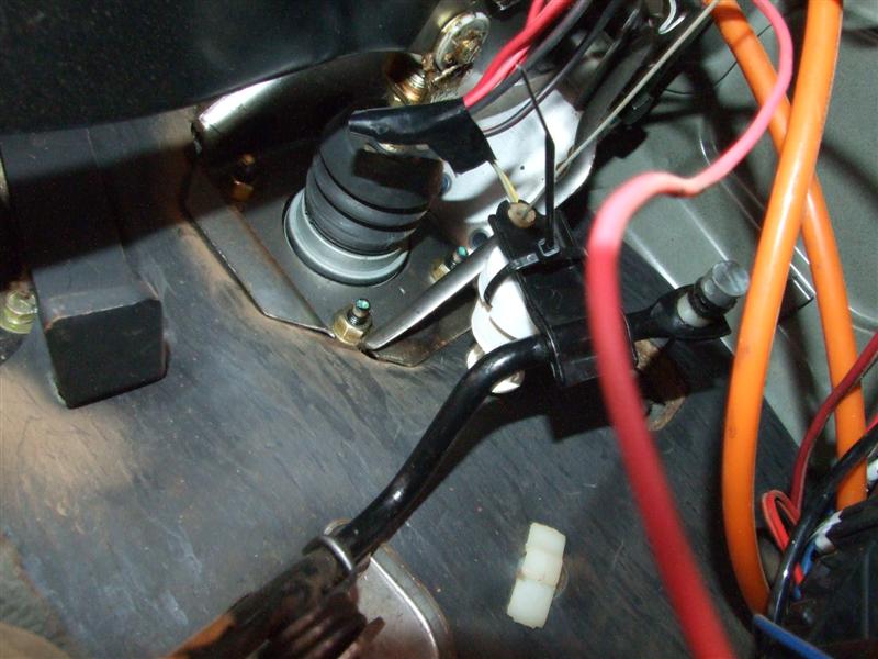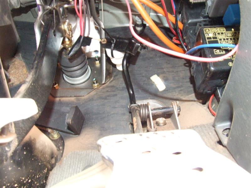 ไม่แน่ใจว่าพอจะมองออกหรือเปล่านะครับ ผมติดตรงตำแหน่งที่สายคันเร่งโยงเข้ามาหาขาคันเร่งครับ งานดิบ ๆ ใช้สวิทซ์ประตูตู้เย็นหรือสวิทซ์ประตูทั่วไปตัวละ 30 บาท กับจุกน้ำปลาและเคเบิ้ลไทร์ครับ